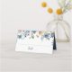 Elegant floral wedding place card/table number card featuring a top border of white, beige and blue watercolor flowers with green leaves designed to coordinate with our Blooming Beauty wedding collection. Add your initials and wedding date to the back of the place cards for a personalized look.