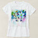 Blooming Beauty T-Shirt. A dreamy portrait of a woman’s face surrounded by colourful flowers, leaves, and butterflies in a burst of vibrant hues.