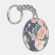Blooming Delight | Peach & Blue Roses & Poppies Key Ring