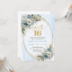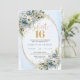 Celebrate a milestone moment with this elegant Sweet Sixteen invitation, featuring a refined watercolor design of dusty blue florals blended with soft white flowers and fresh eucalyptus greenery. Framed by a shimmering gold glitter border and paired with graceful script lettering, this invitation sets a sophisticated tone for a truly unforgettable Sweet Sixteen, Sweet 16th, or 16th birthday celebration.