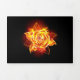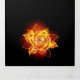 Blooming rose from fire and flame on black background.
