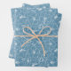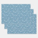 Three sheets of wrapping paper feature an outlines of tropical white hibiscus flowers on a blue background (or any colour you choose). MORE colours in our store.