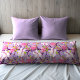 The pattern is blooming magnolia trees with lush flowers and buds. It creates a light-hearted mood, associated with spring nature and beauty.