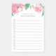 Chic personalised post-it note pad features a top border of watercolor peony flowers in vibrant pink with lush green leaves. Personalise with two lines of custom text in modern lettering; shown with "things to do" and your name. 11 lines with checkboxes help you keep track of all your important tasks!