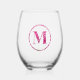 Blooming Pink Floral Monogram Lettering Art "M" Stemless Wine Glass