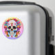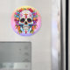 a vibrant and captivating artwork that blends the elegance of floral motifs with the bold symbolism of a sugar skull. Inspired by the traditions of Día de los Muertos, this design features an intricately decorated skull surrounded by a vivid bouquet of colorful flowers. Set against a radiant gradient background.
