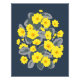 Spring blooming flowers. Pattern of yellow primrose on a dark blue background