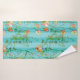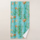 Such a pretty design to enhance your bathroom. This beautiful bath towel has a gorgeous floral pattern on a background of aqua stripes. The flowers are elegantly designed in muted pinks and oranges.