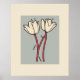 This minimalist floral design captures the beauty of two cream-coloured blooms intertwined, standing tall against a muted grey background. The bright red stems add a playful contrast, making the image pop with just the right touch of whimsy. With clean lines and a retro-modern aesthetic, this piece evokes both tranquillity and quiet joy, perfect for lovers of understated beauty.