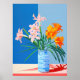 This exquisite artwork captures the serene beauty of a vase filled with vibrant flowers, elegantly positioned on a table. Showcasing a harmonious blend of colours that evoke a sense of tranquillity and warmth. The composition draws the viewer's eye, inviting them to appreciate the delicate interplay of light and shadow.