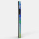 This phone case flaunts a digital collage made up of several layers of scans of photographs, paintings and textures. A cluster of blue violet flowers sits on an abstract background in shades of lavender, green, purple and shades of blue.