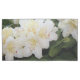 Creamy white blossom designer shams, with green and a touch of pink. Pillow cases for home or cottage. Also see matching duvet.