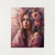 This captivating artwork features a serene woman adorned with a vibrant floral headdress, exuding an aura of elegance and tranquility. Her delicate features are framed by lush, colorful flowers that cascade around her, creating a harmonious blend of nature and beauty. The soft, ethereal tones of the background enhance the dreamlike quality of the piece, making it a perfect addition to any space seeking a touch of grace and sophistication.