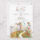 Invite your guests to a cheerful celebration with our Blossoming One floral first birthday invitation. The front dazzles with a vivid garden where numbers bloom into life, created from a rich tapestry of florals in vibrant shades of marigold, tangerine, fuchsia, and sky blue, set against a pure white background. Fluttering butterflies in shades of amber and cobalt add enchanting movement to the scene. The back of the invitation features clean, elegant lines for event details, contrasted against the lively floral number, promising a day as bright and joyful as the wildflower meadow that inspired this design.