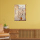 This pretty impressionist still life features a small blossoming tree in a terracotta pot on a window sill. The colours in this artwork are soft peach and apricot.