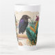 The picture shows a majestic raven with shiny black fiddle that captures purple and blue accents, sitting on a branch of lush tropical plants. Surrounded by bright green leaves, colorful flowers and a warm color gradient, it exudes mystical peace and wild beauty. The harmonious colors and the detailed nature give a feeling of adventure and connection to nature.