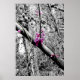 A black and white photograph with a little colour