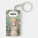 A sweet chibi girl, her blond hair catching the sunlight filtering through the leaves, explores a magical woodland. Pastel pink blossoms frame her delicate features as she gazes at the beauty surrounding her. Did you know that in the language of flowers, pink blossoms often symbolize joy, gratitude, and sweetness? This design captures the essence of innocence and wonder, inviting you to step into this enchanting world alongside this adorable chibi adventurer.