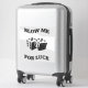 The stick looks amazing. Unfortunately, it would not stick on our suitcase as it was textured. When we found a non-textured (smooth) suitcase, the sticker stuck and looks great. The printing looked awesome.