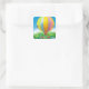 Artist: Paul Sharp | A little boy and girl flying in a hot air balloon over a farm