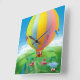 Artist: Paul Sharp | A little boy and girl flying in a hot air balloon over a farm