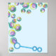 Blowing Rainbow Soap Bubbles Bubble Wand Blue Poster