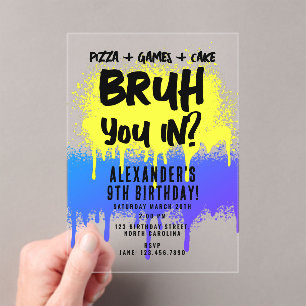 Modern Boho Blue and Yellow Hanukkah Party Invitation