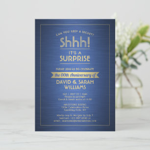 Anniversary Surprise Party Elegant Navy Blue Gold Invitation