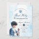 Blue 1st Holy Communion Boy Praying Silver Cross Invitation