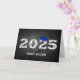 Blue graduation cap and 2025 text with CONGRATS word cloud on black slate rock background for graduate.