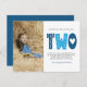 Modern, simple and elegant boy second birthday thank you postcard. Design featuring blue and navy typography two , thank you message and a photo.
