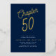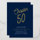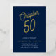 Celebrate your golden anniversary in style with this luxurious, sophisticated and eye-catching Blue 50th Birthday Gold Script Chapter 50 Party Foil Invitation. Featuring gold foil script, this invitation is the perfect way to invite your family and friends to join you in commemorating your milestone birthday with an extravagant event. From the dazzling decorations to the delicious desserts, you'll be sure to make lasting memories on this special day.