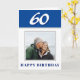 Blue 60th Birthday Custom Photo Personalised Card. Personalised 60th birthday greeting card for someone celebrating 60 years. This modern and simple design features the age, photo and Happy birthday text. Add your photo into and message inside or erase it. You can also change the age number.