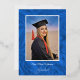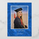 The blue abstract background has a satiny look to it. Great for your graduation announcement card. The "Graduate" text on the front is actually a graphic image but is editable with the Design Editor. The photo and all text are easily changed with the template. Selecting “Personalize this design” offers you several edit options to easily change the text (wording, plus type font, color, size, position) and to edit the design elements, if you desire. You may also want to scroll down to the section “Transfer design to a product” for a few suggestions about other items this design can be used on.