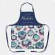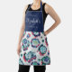 Custom kitchen apron feature abstract floral pattern in blue, green, turquoise and red with personalised name and text. Great personalised kitchen apron for women.