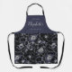Custom kitchen apron feature abstract floral pattern in navy blue and black with personalised name and text. Great personalised kitchen apron for women.