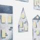 Blue abstract line House pattern Wallpaper. Refresh your space with this Blue abstract line House pattern wallpaper. Perfect for a kitchen backsplash, bathroom and more.