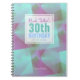 Beautiful abstract background (pastel colours: blue, light purple and pink) with a half-transparent white square tag (tiny transparent border) for name, date and birthday. All is customisable for this 30th birthday guest book.