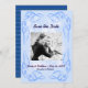 Blue Abstract Swirl Border Save the Date Flat Card with framed swirls at corners. The back has a striped pattern with the darker Pantone Lapis blue colour. Rotate it for a different effect. Convert this for any occasion. Add a photo and/or change the text. The blue is close to Niagara Blue popular for this year.
