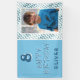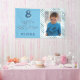 Blue Abstract Wave Boy Photo Happy Birthday Banner. The design has blue and white waves, blue background, fun text happy birthday and name. Add your photo and your name. Great for a boy`s birthday party.