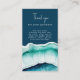 elegant thank you enclosure card, perfect for boutiques, small businesses, or creative shops. The design features a deep navy blue background with a modern handwritten “Thank you for your purchase” in crisp white script. A striking watercolor wash in teal and emerald green adds an artistic touch along the bottom edge, creating a fresh, contemporary look. The card offers space for your personalised message, business information, or contact details in clean, minimalist type. This card brings a professional, memorable finish to every order.