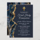 Blue Agate Gold First Holy Communion Boy's Invitation