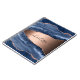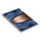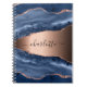 A dark blue and rose gold agate, marble stone print as background Personalise and add your name. The name is written with a modern hand lettered style script.