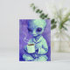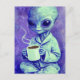 Blue Alien With a Cup of Coffee Postcard
