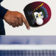 This funny ping pong paddle has a blue haired penguin on it holding a bat. It is part of a matching set of paddles and balls; with a red haired penguin paddle and anarchy table tennis ball to match. It is one of a number of fun ping pong rackets and balls that you can buy from Superkalifragilistic.