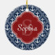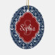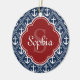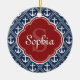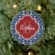 Blue Anchor Pattern Red Monogram Ceramic Ornament