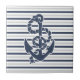 Trendy stripe pattern in blue, white and grey with an anchor shape overlay.