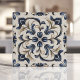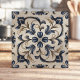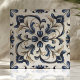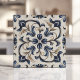 Blue and Beige Vintage Floral Scroll Ceramic Tile