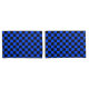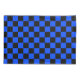 A blue and black checkerboard pattern fills the image, creating a uniform, alternating grid of squares, conveying a bold and geometric feel.