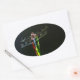 Blue and black Dragonfly on green and red grass Oval Sticker